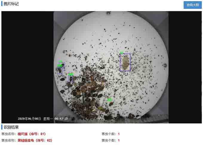 病蟲(chóng)害監(jiān)測(cè)預(yù)警系統(tǒng)通過(guò)云端的人工智能引擎可對(duì)害蟲(chóng)蟲(chóng)體進(jìn)行自動(dòng)標(biāo)記和識(shí)別,對(duì)害蟲(chóng)進(jìn)行分類計(jì)數(shù)。通過(guò)利用人工智能技術(shù),系統(tǒng)可識(shí)別柳藍(lán)葉甲、褸裳夜蛾、灰胸突鰓金龜、金星尺蛾、美苔蛾等害蟲(chóng),識(shí)別種類多達(dá)100多種,識(shí)別準(zhǔn)確率高于85%,大幅提升識(shí)別率。通過(guò)遠(yuǎn)程監(jiān)測(cè),用戶可以在線準(zhǔn)確掌握林業(yè)病蟲(chóng)害發(fā)生情況,針對(duì)具體蟲(chóng)害類型采取防治措施。